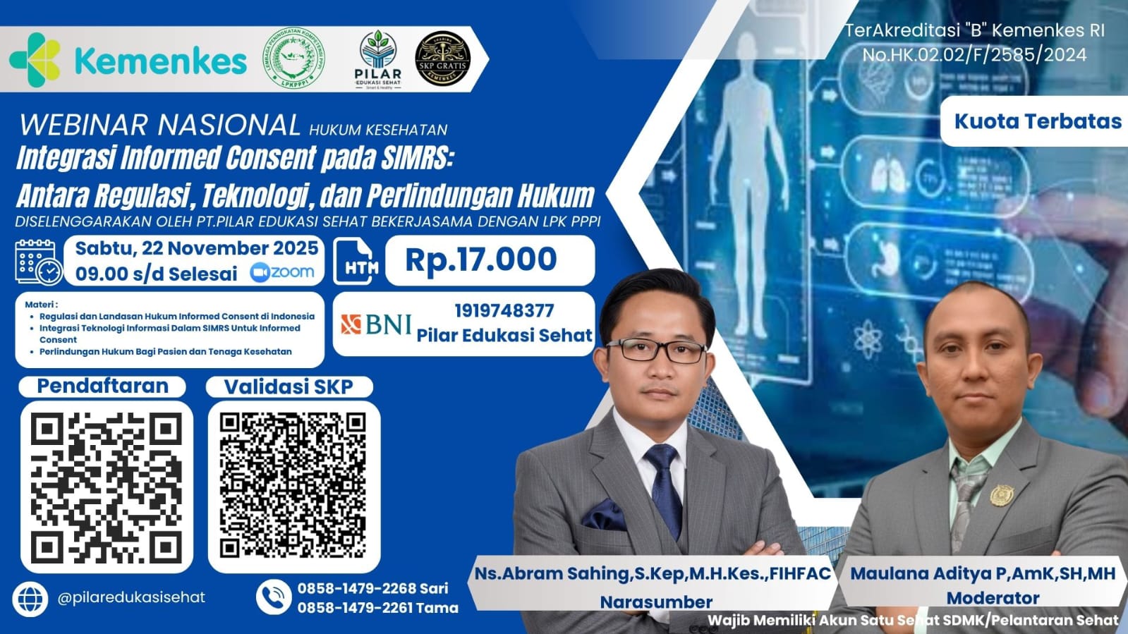 • Tujuan: Memberikan pemahaman mendalam mengenai pentingnya integrasi informed consent dalam SIMRS sebagai upaya memperkuat kepatuhan regulasi, pemanfaatan teknologi informasi, dan perlindungan hukum bagi pasien maupun tenaga kesehatan.