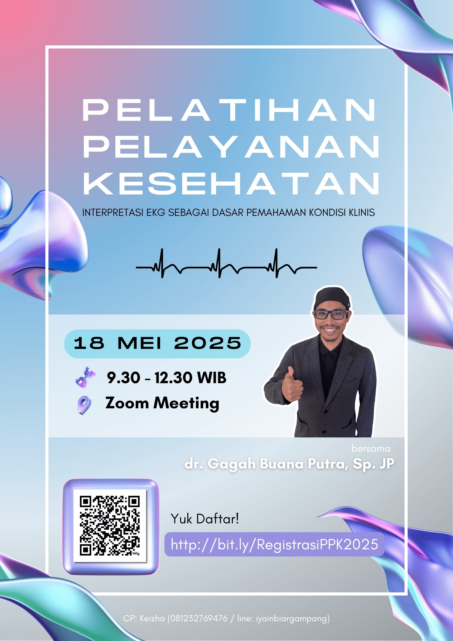 Kamu tertarik memperdalam skill pelayanan kesehatan? Atau ingin lebih siap menghadapi dunia klinis? Nahhh, kebetulan ada kesempatan emas nihh 🎫, dengan tema "Pemeriksaan EKG (Elektrokardiogram)". Kami dari Himpunan Mahasiswa Program Studi Kedokteran (HMPD) FK-KMK UGM akan mengadakan Pelatihan Pelayanan Kesehatan yang bisa diikuti oleh temen-temen semua!!
