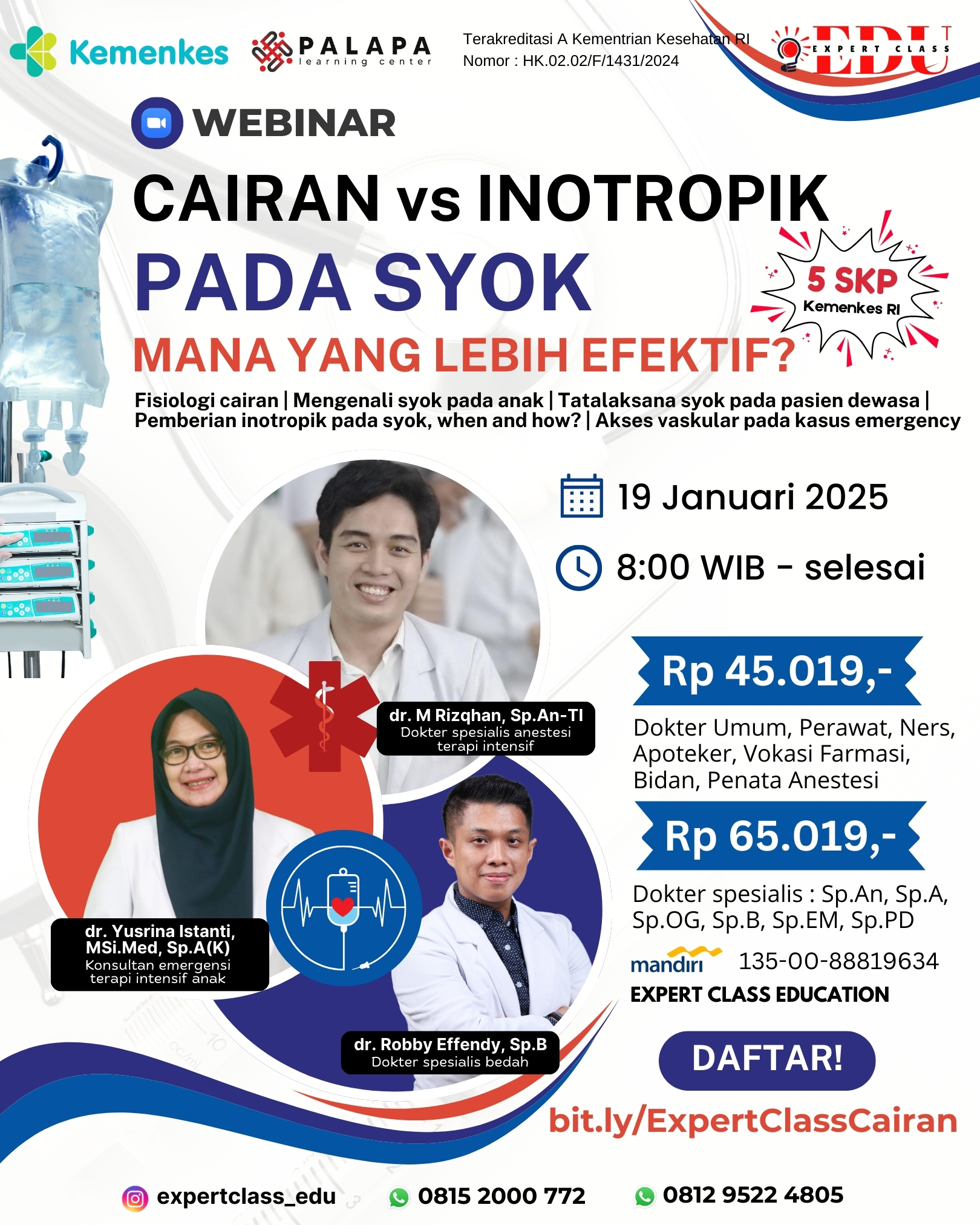 Buat yang suka bingung kalo ketemu pasien syok, kapan berhenti memberikan cairan, kapan mulai beri inotropik, lalu apa inotropiknya, yuk join dan dapatkan 5 SKP Kemenkes RI