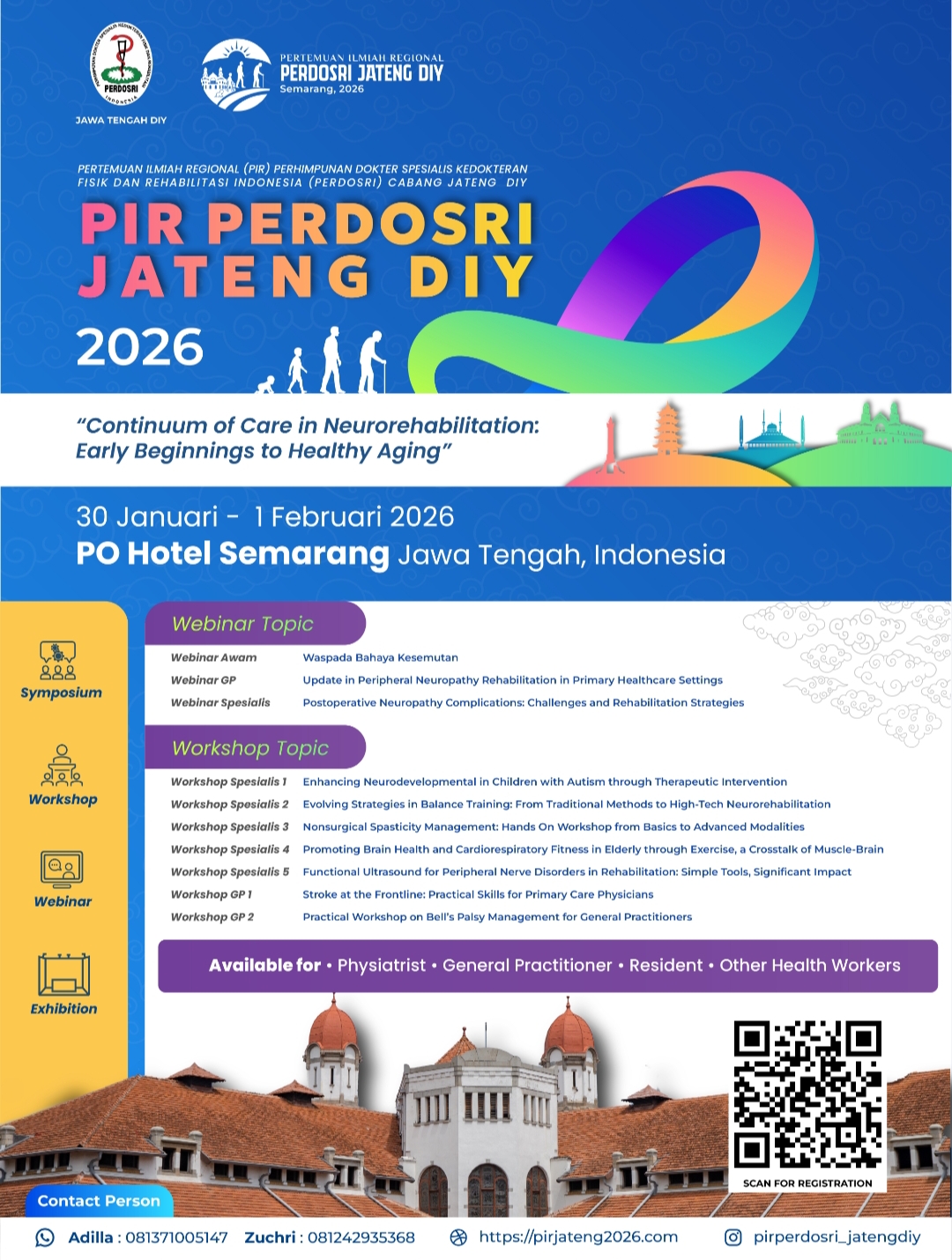 Perhimpunan Dokter Spesialis Ilmu Kedokteran Fisik dan Rehabilitasi Indonesia (PERDOSRI) Cabang Jawa Tengah–DIY dengan bangga mempersembahkan: