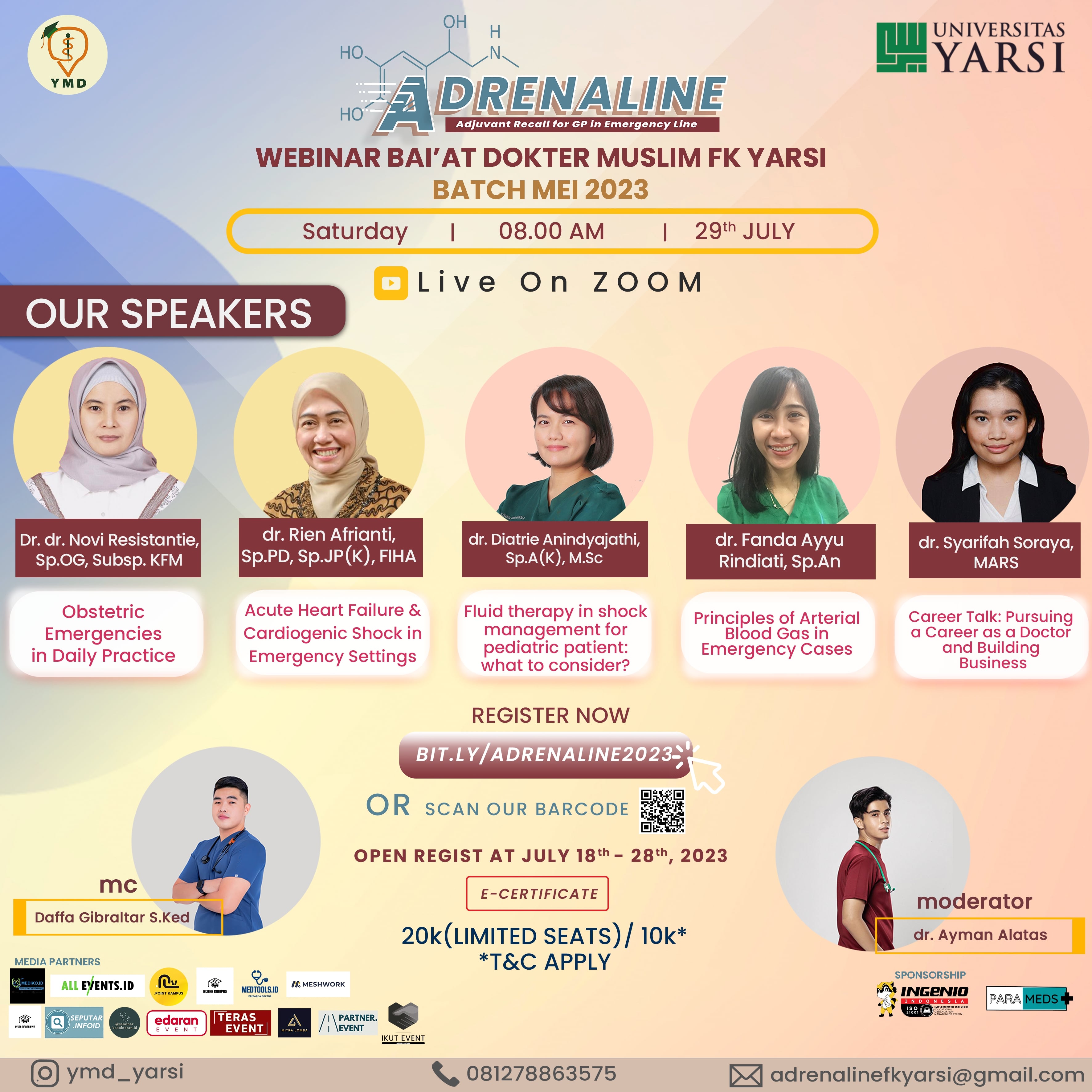 Panitia Sumpah Dokter Fakultas Kedokteran Universitas YARSI mempersembahkan Webinar Yarsi Medical Doctor: ADRENALINE 2023.