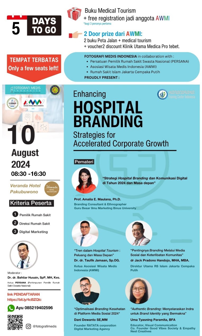 Dengan mengikuti seminar ini, Anda dapat mengimplementasikan strategi branding yang efektif dan meningkatkan kehadiran serta profitabilitas rumah sakit Anda di tahun 2024. Jangan lewatkan kesempatan berharga ini!