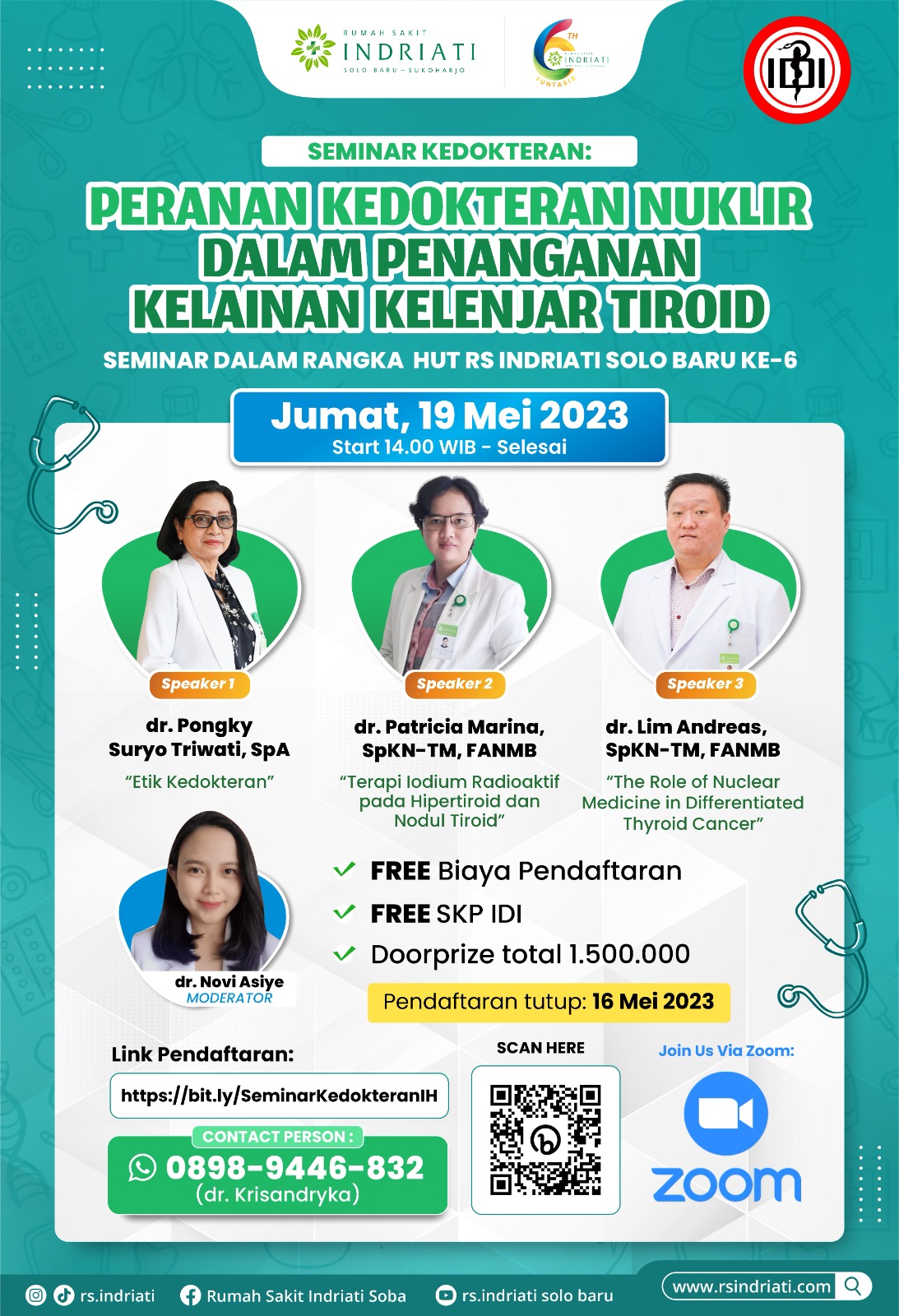Oleh karena itu, kami mengundang teman-teman dokter untuk hadir dalam webinar yang bertajuk "Peranan Kedokteran Nuklir Dalam Penanganan Kelainan Kelenjar Tiroid"