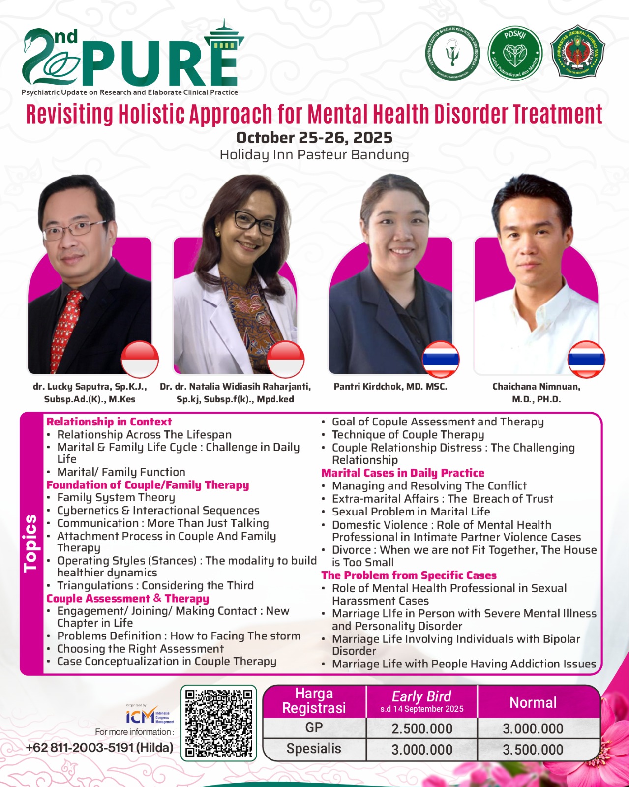 Jangan lewatkan forum ilmiah bergengsi yang mempertemukan para psikiater, dokter umum, akademisi, dan praktisi untuk mendalami pendekatan holistik dalam tata laksana gangguan kesehatan jiwa