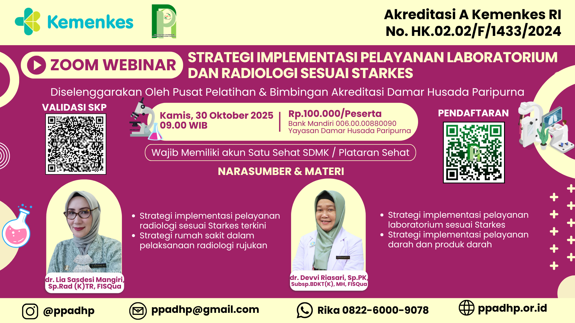 • Tujuan: Setelah mengikuti webinar ini peserta mampu meningkatkan pengetahuan mengenai Strategi Implementasi Pelayanan Laboratorium dan Radiologi Sesuai Starkes.