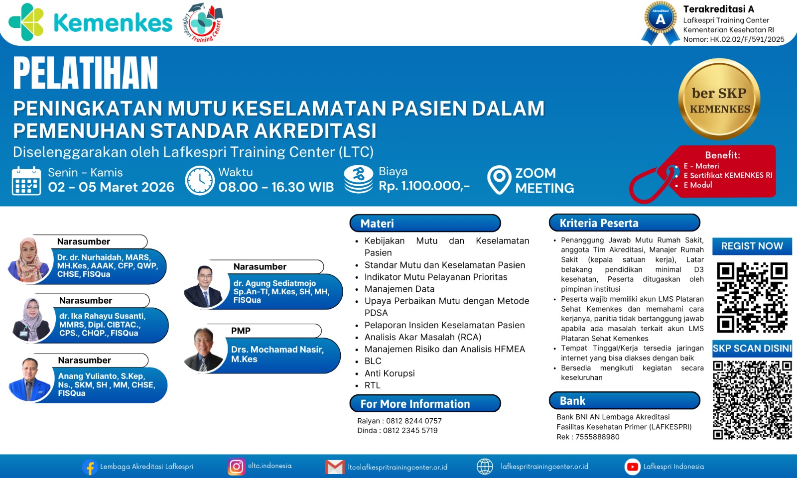 • Tujuan: Setelah mengikuti pelatihan, peserta mampu melakukanuntukmelakukan penjaminan mutu di rumah sakit