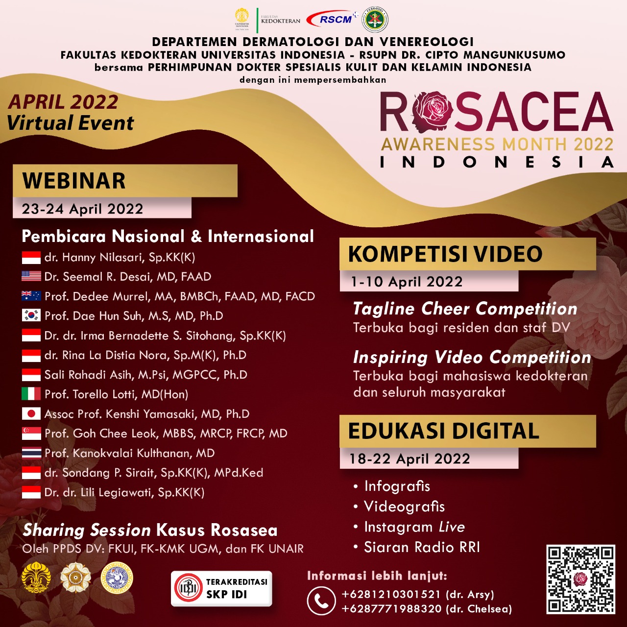 Dalam rangka memperingati Rosacea Awareness Month yang jatuh pada bulan April, Departemen Dermatologi & Venereologi FKUI-RSCM bersama PERDOSKI, dengan bangga mempersembahkan:
