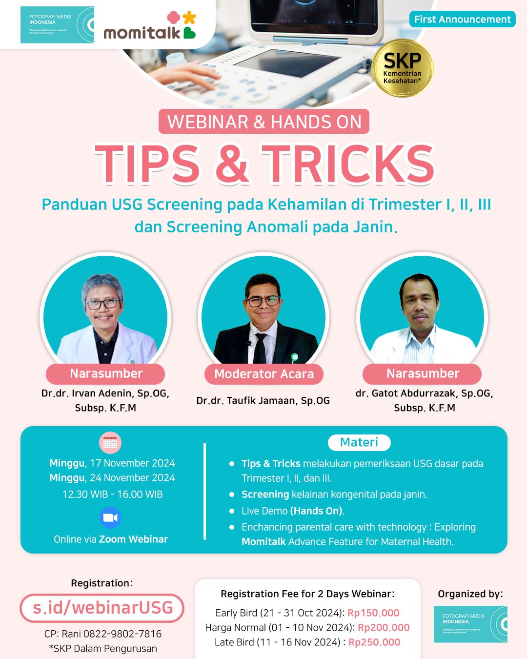 Webinar dan Hands On yang dipandu oleh Dokter Spesialis Obstetri dan Ginekologi dengan materi-materi sebagai berikut: